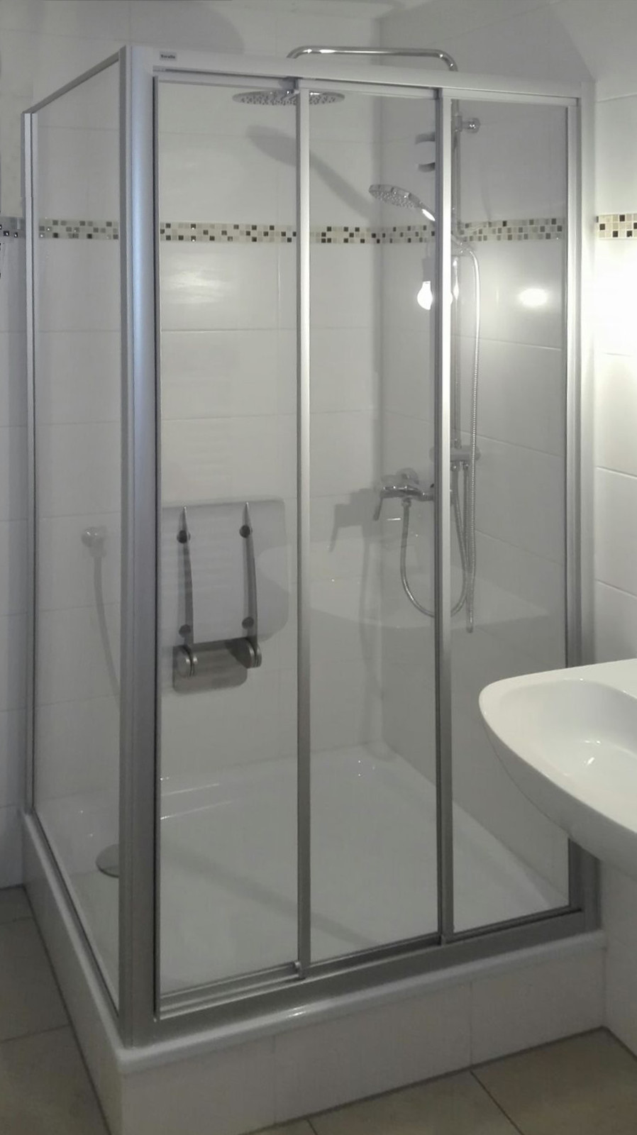 - Dusche mit Sitzgelegenheit